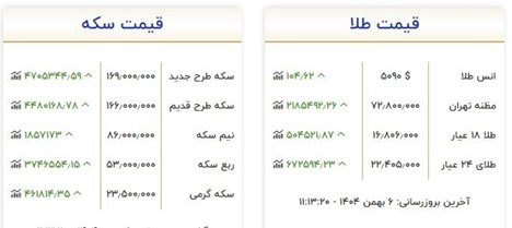 قیمت جدید طلا و سکه امروز ۶ بهمن/ این رشد باورنکردنی تنها در چند ساعت ثبت شد.