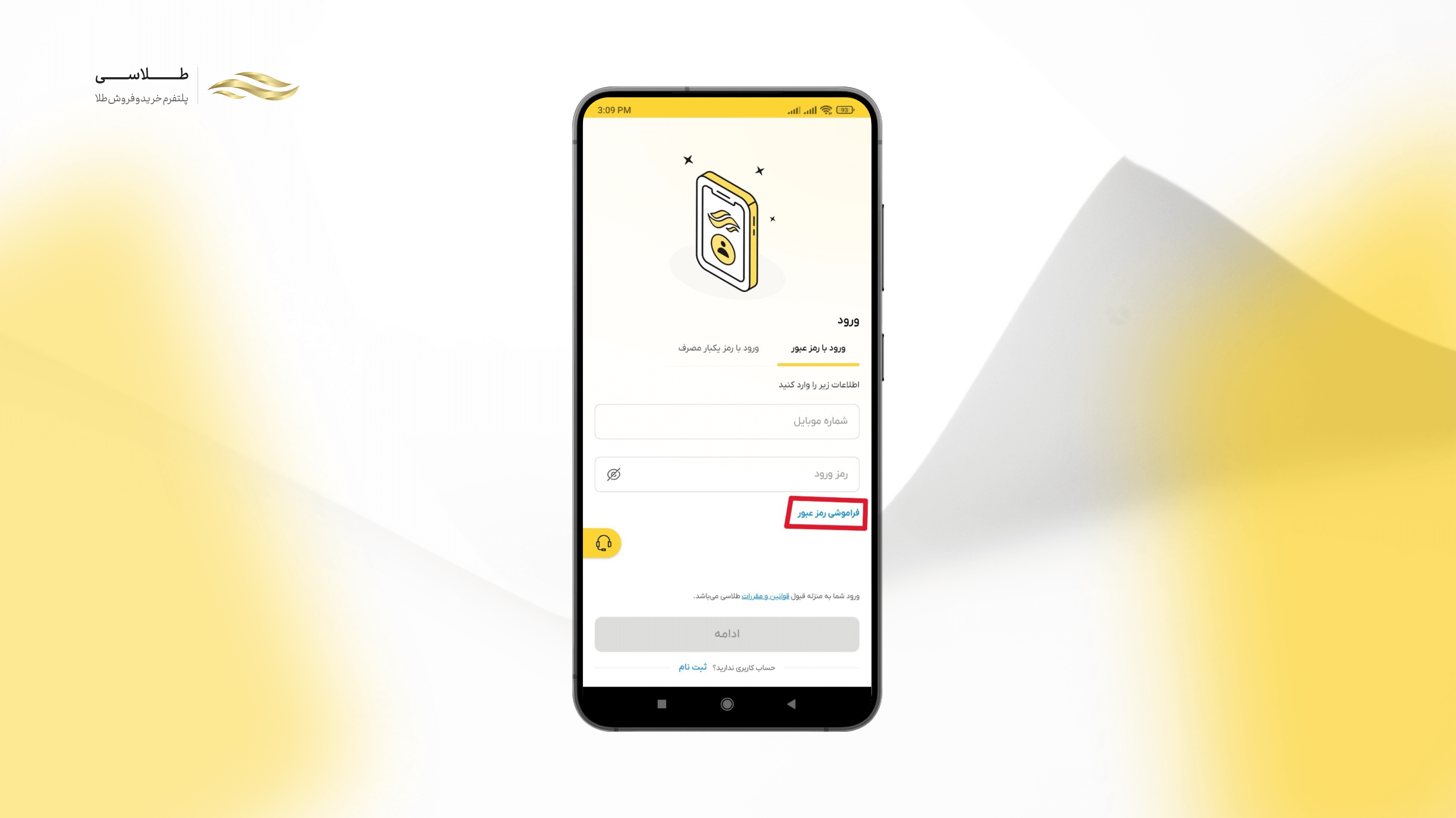 راهنمای بازیابی رمز عبور در طلاسی
